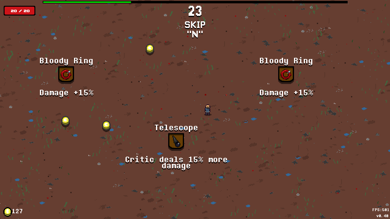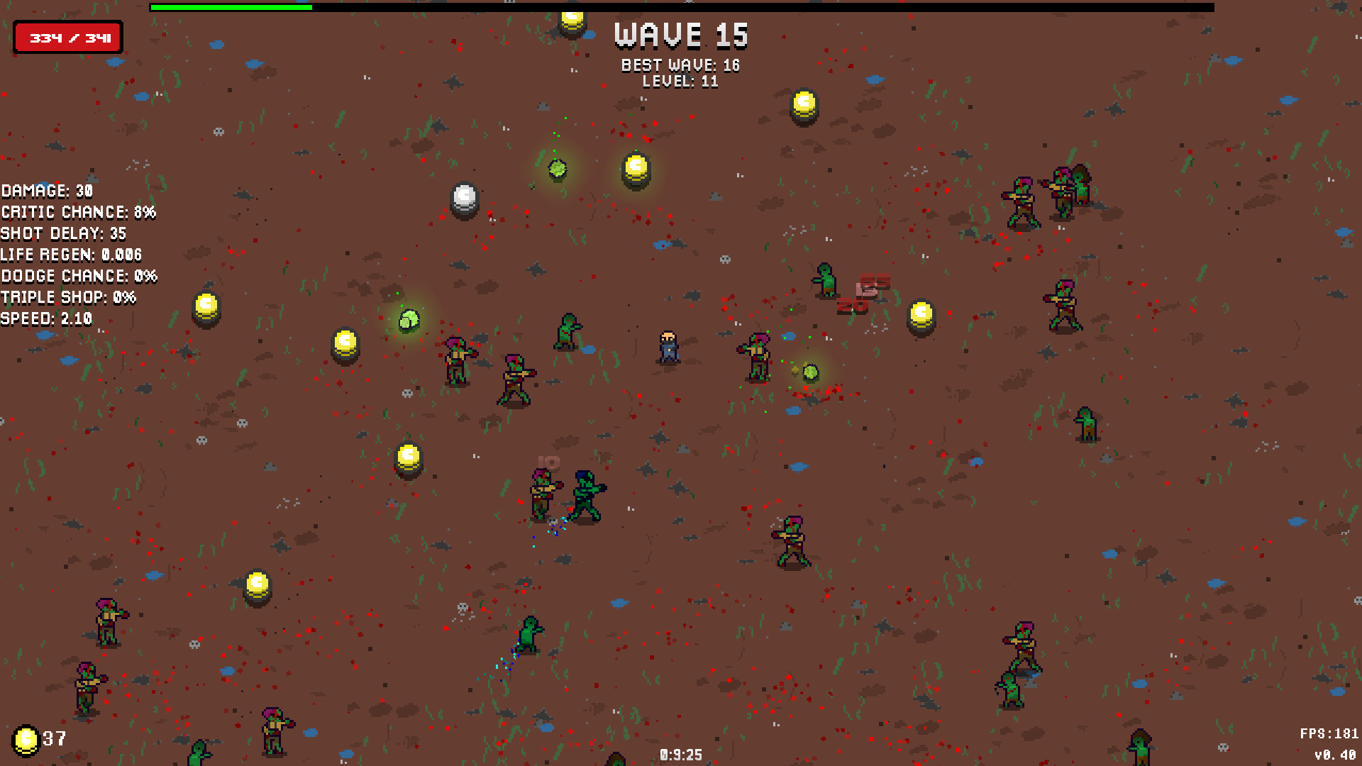 A wave-based roguelite where your enemies are zombies, and your goal is to kill'em all.